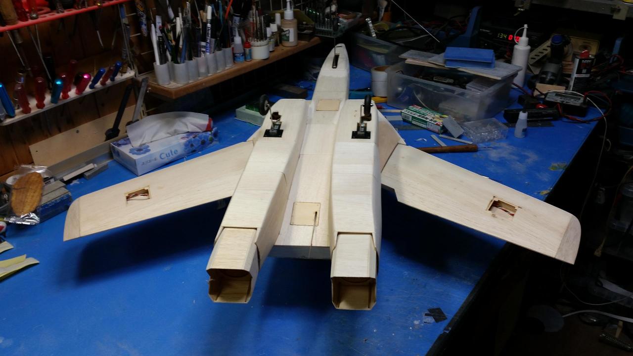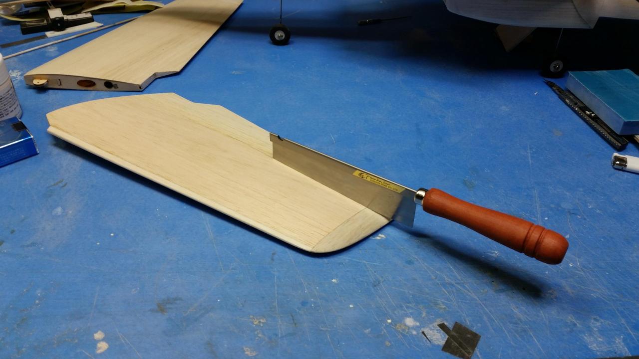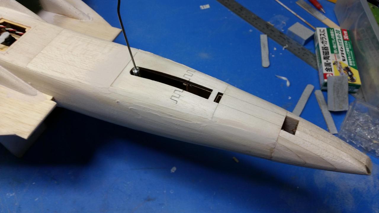 主翼の翼端整形を行い、エレボンを切り離しました。機体裏面のプランクとノーズの積層、整形が終わりました。
