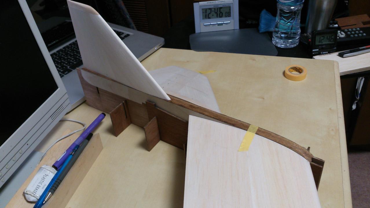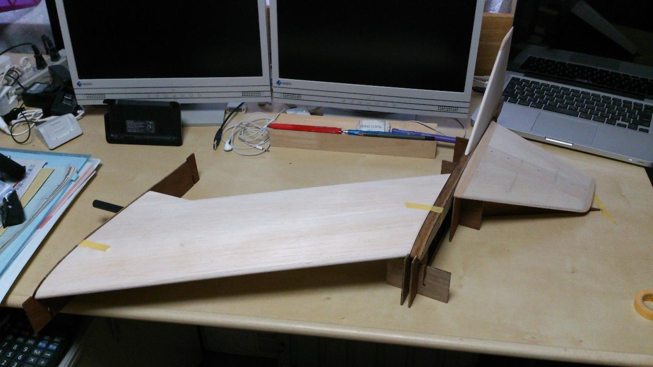 胴体上面プランクと主翼取付け確認