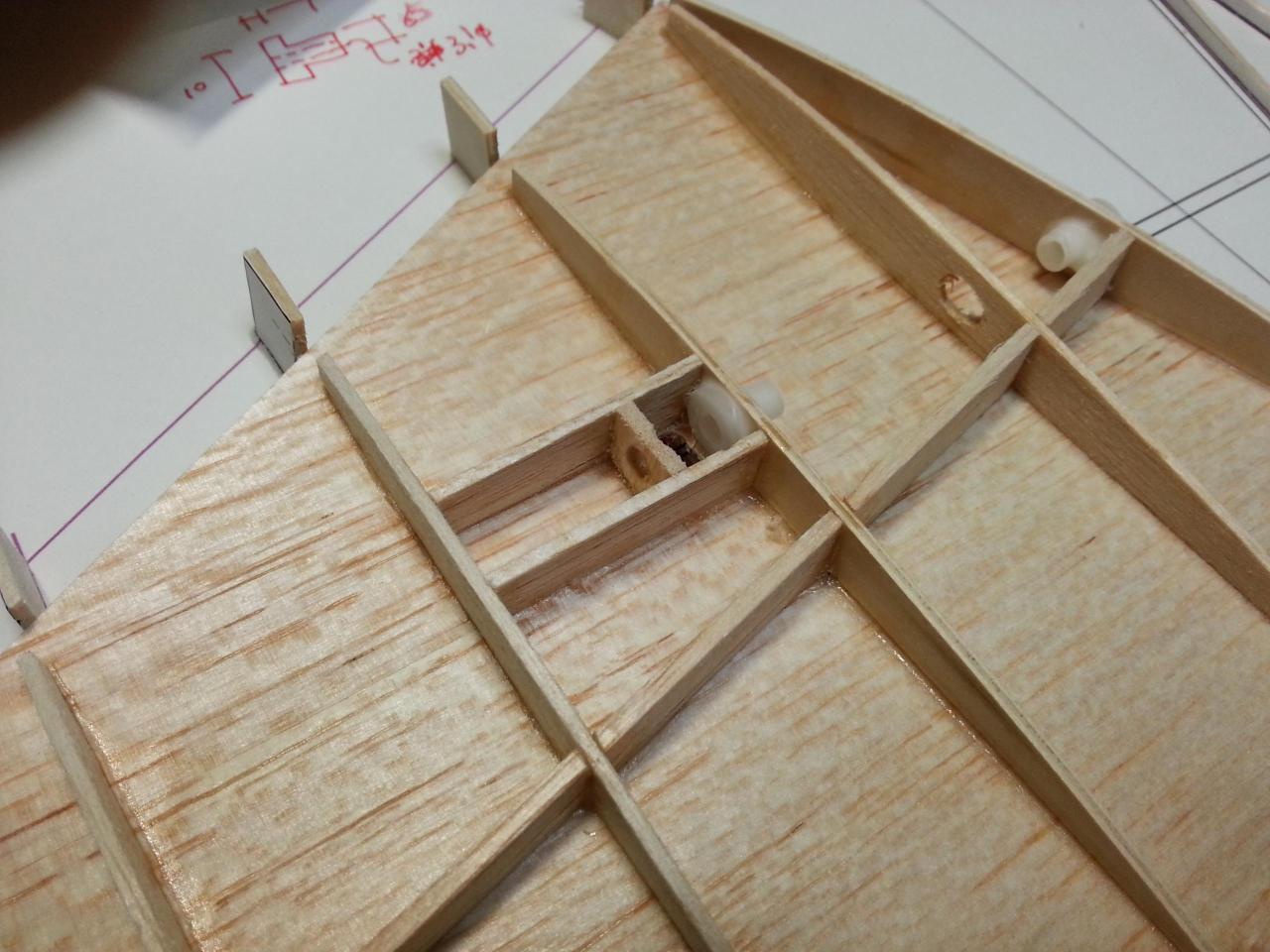 コントロールホーンの取り付け部分にバルサブロッグを入れプランク行いました。