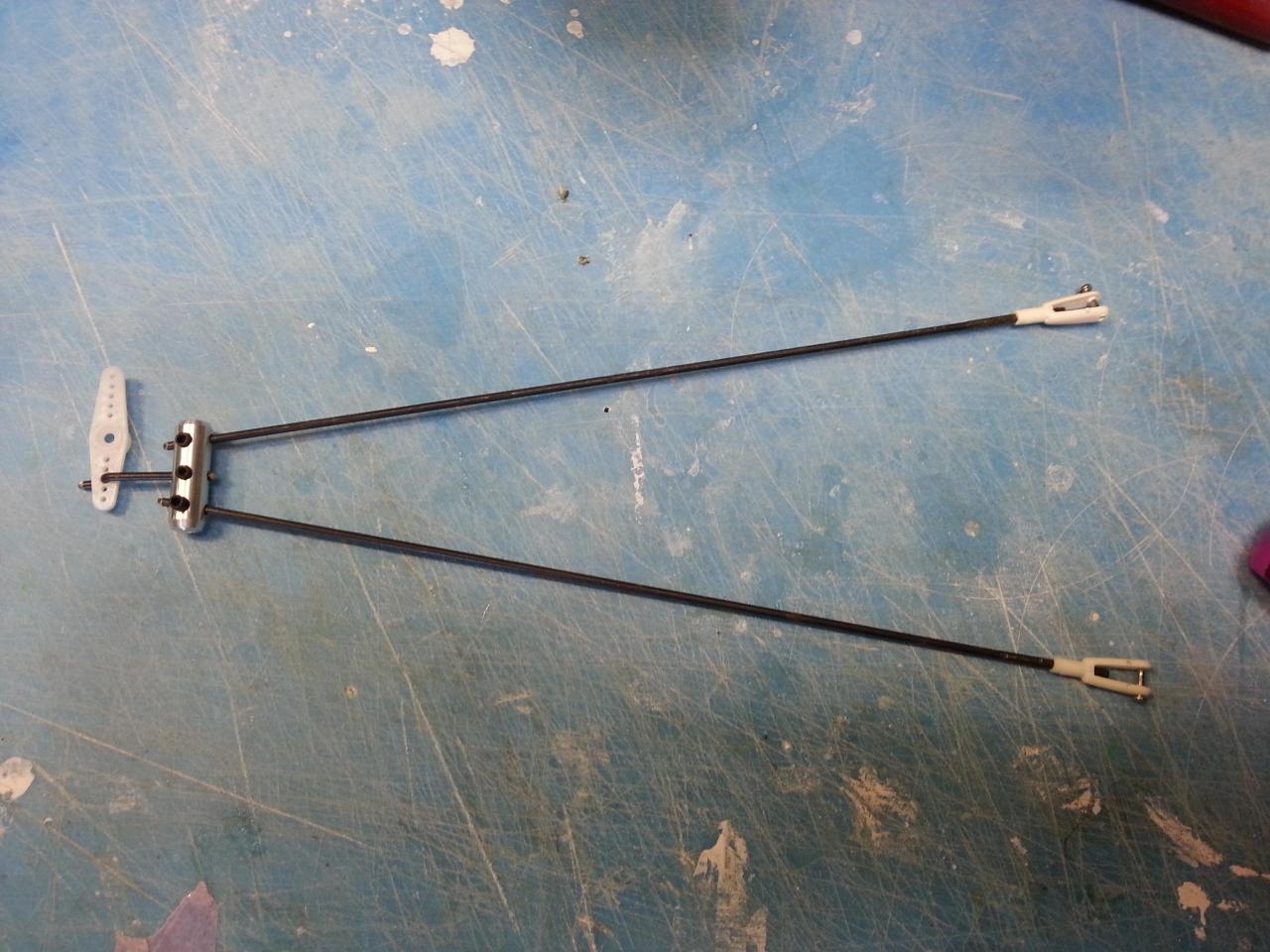 エレベーターのリンケージを作成しました。1サーボで2つの舵を動かす為のリンケージです。