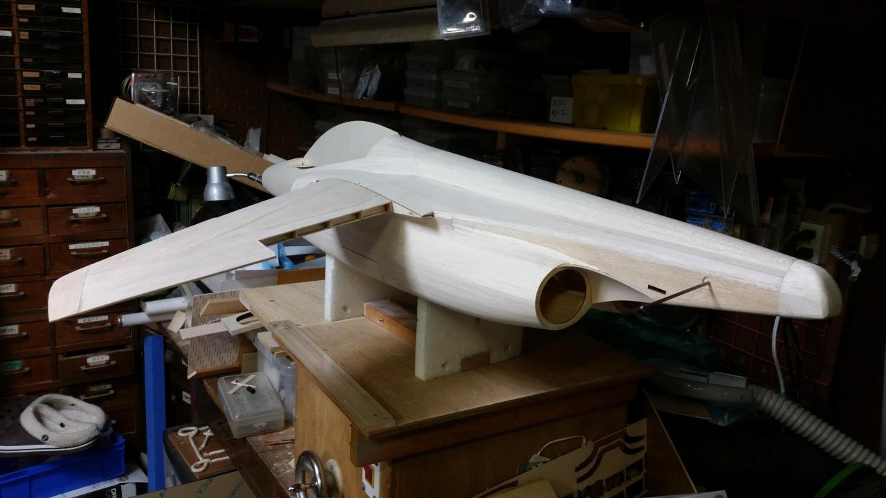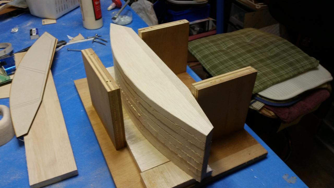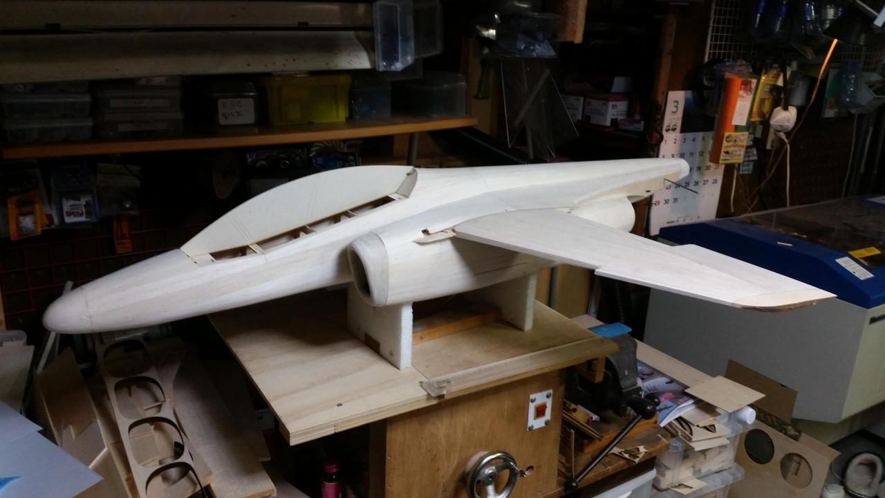 ようやく、主翼の製作に掛っています。また、キャノピーのオス型の製作の為のブロックを積層用の冶具に入れて接着を開始しました。