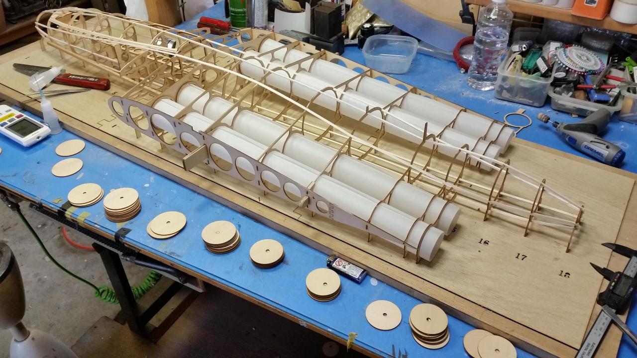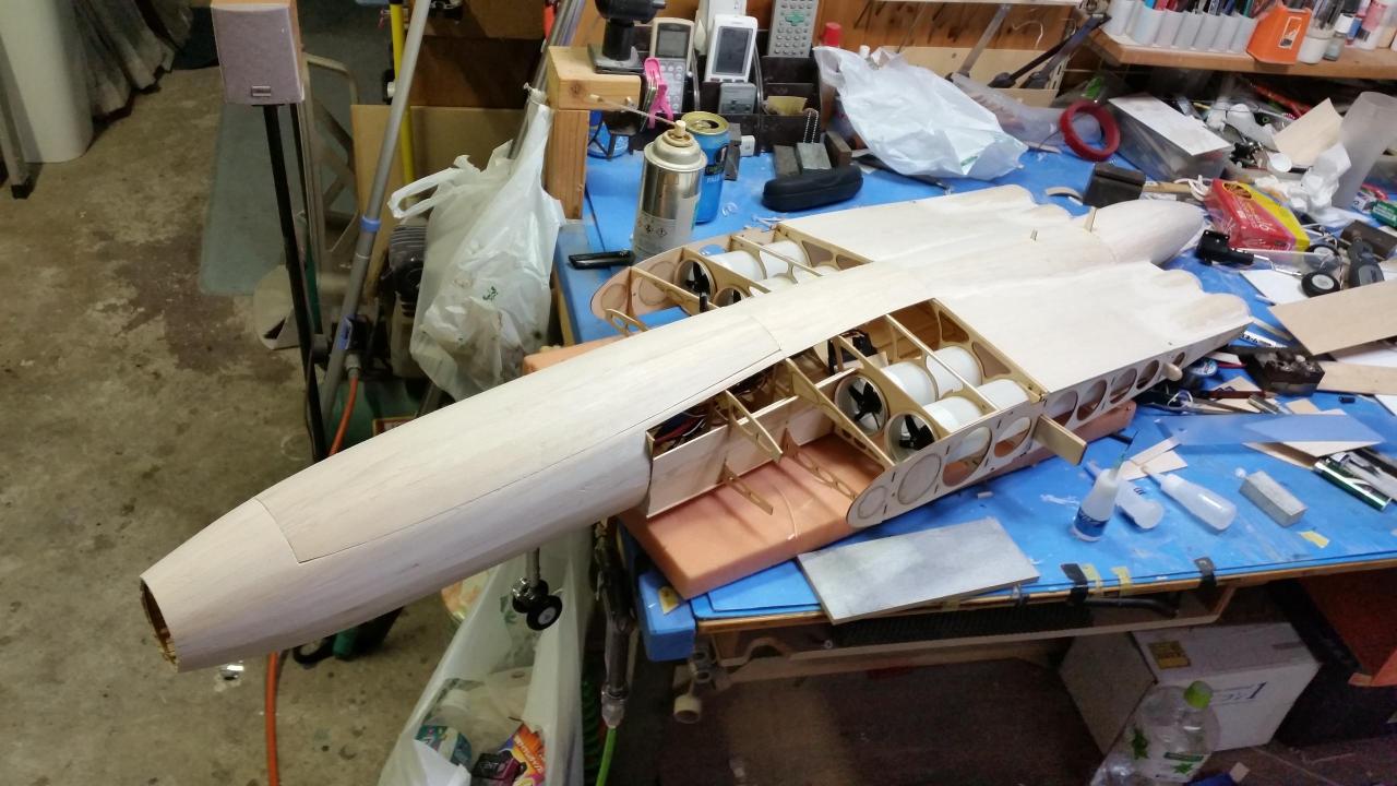 7月末に一回目試作を行いましたが、あまりの大きさに、これはさすがに飛ばないと判断して、90%で再設計、お盆休みからようやく、バルカンを製作しています。ここまで、全力で製作していますが、10月1日までに本当に完成するか、かなり厳しいものがあります。