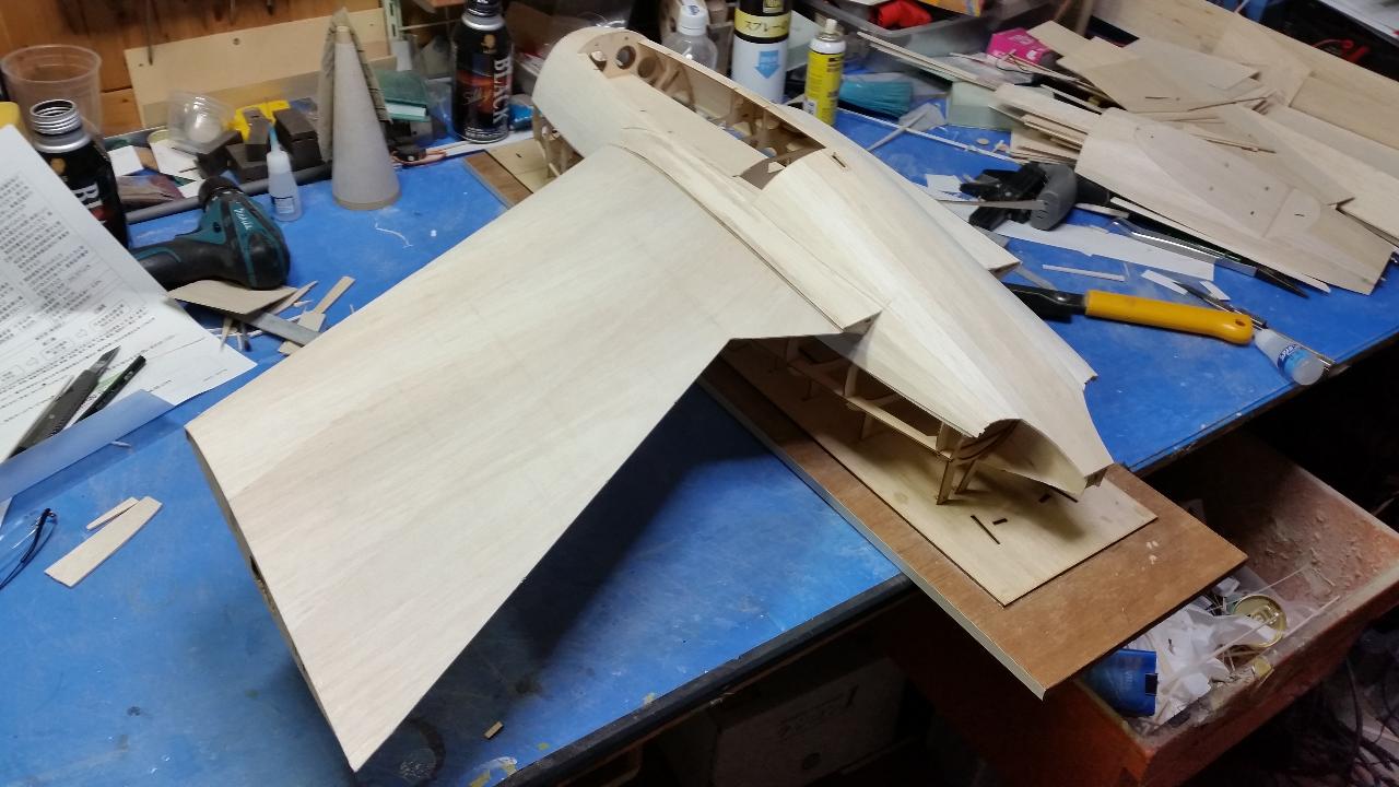 胴体上面プランクと主翼取付け確認