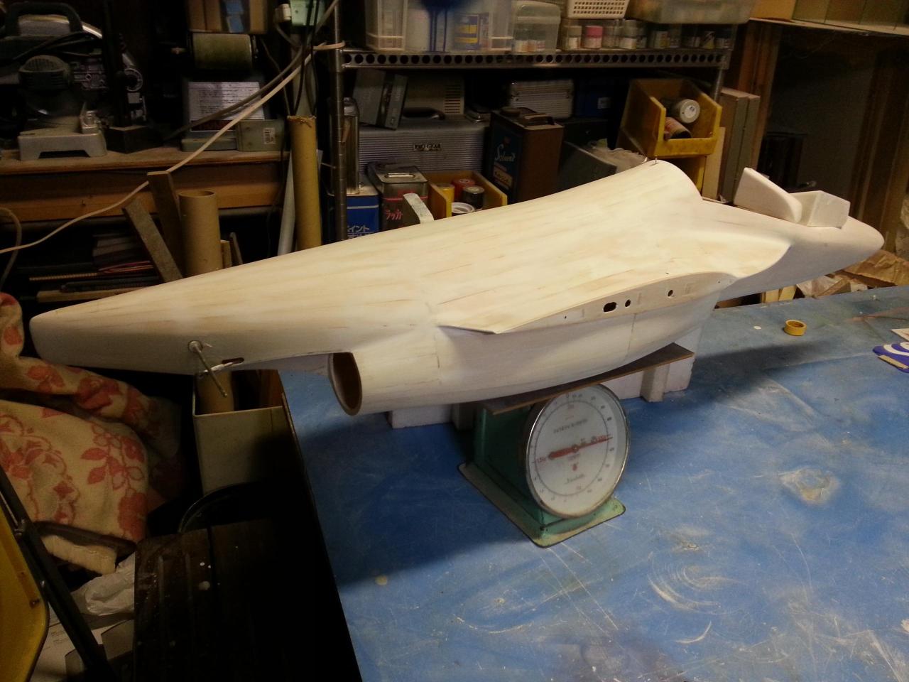 胴体の一回目のサンディングサフェーサーを塗りサンディング